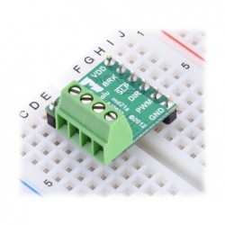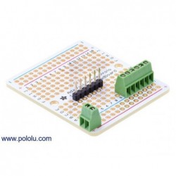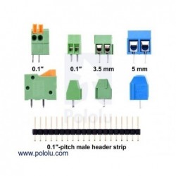 These side-entry screw terminal blocks have a pitch of 0.1″ (2.54 mm), and can be used as alternatives to standard 0.1″ male or female headers on many PCBs and prototyping boards. Each block has two terminals for the stripped ends of 26 – 18 AWG wires. They are rated for 150 V, 6 A and ship in packs of four.
