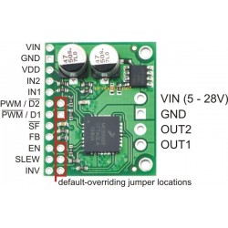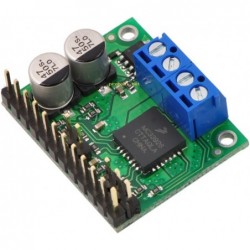 This breakout board for Freescale’s MC33926 full H-bridge has an operating range of 5 – 28 V and can deliver almost 3 A continuously (5 A peak) to a DC motor. The MC33926 works with 3 – 5 V logic levels, supports ultrasonic (up to 20 kHz) PWM, and features current feedback, under-voltage protection, over-current protection, and over-temperature protection.