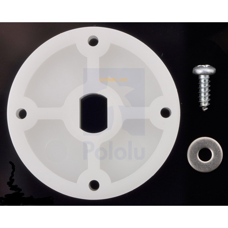 This sturdy plastic wheel for the GM2, GM3, GM8, and GM9 gearmotors can also be used as a wheel adapter for other wheels or as a mount for other mechanisms via four mounting holes. The wheel also fits on Pololu plastic gearmotors.