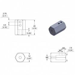 These 20 mm long aluminum adapters convert a 6 mm diameter shaft to a 12 mm hex shaft that is compatible with many common hobby RC wheels. The set includes two adapters, two M4 screws for securing wheels to the adapters, four M3 set screws for securing the adapters to motor shafts, and one 1.5 mm Allen wrench for use with the set screws.