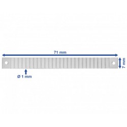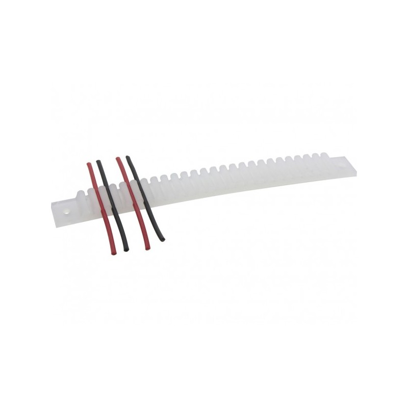 With 25 slots for small cords and wires and 2 mounting holes, plastic, length approx. 72 mm. For an organized wiring under the railway board.
