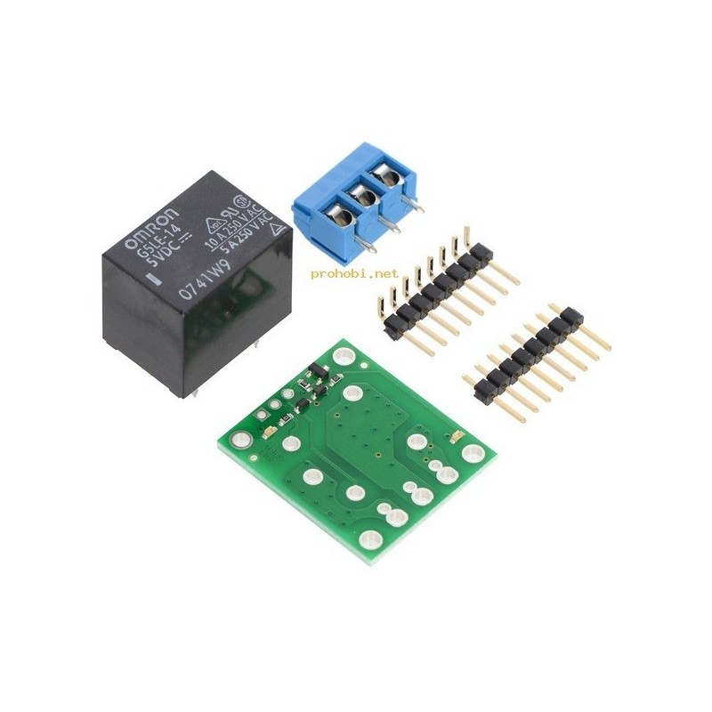 Pololu rele modul omogoča enostavno integracijo releja v vaš elektronski projekt z tiskanim vezjem, ki vsebuje vse potrebne elemente za njegovo krmiljenje, na način da ga je mogoče uporabiti samostojno ali pa na preizkusnih ploščah (protoboard).