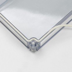 Kakovostno, proti prahu in curkom odporno ABS ohišje s prozornim pokrovom, zaščitni razred IP 65.